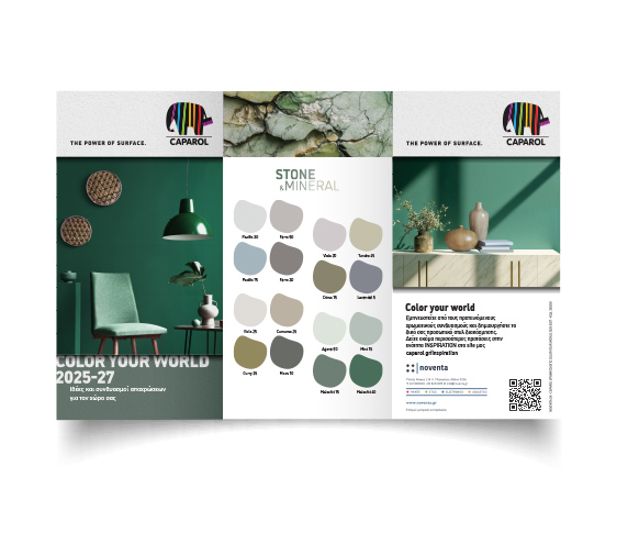 Σας παρουσιάζουμε το πλήρως ανανεωμένο χρωματολόγιο της Caparol, που ενσωματώνει όλες τις σύγχρονες τάσεις του χρώματος στη διακόσμηση με εξαιρετική καλαισθησία και δημιουργικότητα!Αποχρώσεις εμπνευσμένες από τη φύση, τόσο μοντέρνες, όσο και διαχρονικές!Το χρωματολόγιο είναι δομημένο σε οργανωμένες ομάδες αποχρώσεων που συνοδεύονται από επιλεγμένες διακοσμητικές προτάσεις για να διεγείρουν τη φαντασία σας και να σας δώσουν ιδέες για την ανανέωση του χώρου σας!