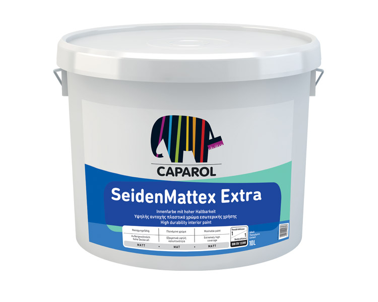 Μπορούμε να επιλέξουμε μεταξύ των SeidenMattex Extra ή SeidenLatex για εξαιρετικό semi-mat φινίρισμα.Το SeidenMattex Extra είναι υψηλής ποιότητας υδατοδιαλυτό χρώμα για εσωτερική τοιχοποιία. Χαρακτηρίζεται από υψηλή λευκότητα, μεγάλη καλυπτικότητα, και ισχυρή πρόσφυση στην επιφάνεια. Διαθέτει εξαιρετικές ιδιότητες εφαρμογής δίνοντας ένα ματ ομοιόμορφο φινίρισμα που διαρκεί. Είναι φιλικό στον χρήστη και στο περιβάλλον, δεν περιέχει επικίνδυνες χημικές ουσίες και είναι πρακτικά άοσμο προϊόν. Εγγυάται την επίπεδη δομή επίστρωσης με την υψηλότερη αντοχή στο πλύσιμο και στην υγρή τριβή (Class-1, EN 13300) και αδιαφάνεια (Class-1, EN 13300).Το SeidenLatex είναι υψηλής ποιότητας πλαστικό χρώμα, ακρυλικής βάσης, για εσωτερική χρήση. Είναι εντελώς άοσμο και ανώτερης οικολογικής ποιότητας (E.L.F.). Λόγω της σύνθεσής του, έχει ένα ημι-ματ εξαιρετικό φινίρισμα (eggshell finish), δίνοντας παράλληλα μεγάλες αντοχές σε πλυσιμότητα, υψηλή κάλυψη και εξαιρετική αντοχή. Δουλεύεται εύκολα και έχει μεγάλη απόδοση. Χρωματίζεται μέσω του συστήματος χρωματισμού Color Express της Caparol.